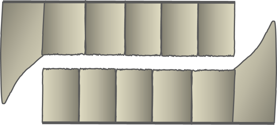 A wave mouth can be thought of as an extension of a step mouth. A step mouth occurs when only one tooth in an arcade is dominant; a wave mouth occurs when two or three cheek teeth in an arcade are dominant (Figure 6).